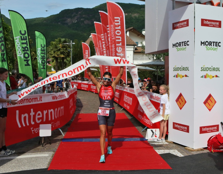 La coppia fuggitiva è rimasta ben salda al comando anche nella seconda frazione di bici, che prevedeva 40 spettacolari chilometri conditi da una decisiva salita da ripetere tre volte. Purtroppo i crampi alle gambe hanno messo KO l’altoatesina Göller durante il secondo giro sui pedali, ed è stata costretta a ritirarsi nella frazione del running. La friulana Luisa Iogna-Prat ha fatto forcing negli ultimi 10 km di corsa, abbandonando la fedele compagna Orla, quest’ultima vincitrice al Triathlon di Caldaro nel 2016 e che quest’anno si è dovuta inchinare all’avversaria Iogna. Terza piazza invece per l’ungherese Kovacs, mentre prima tra le altoatesine è transitata Lea Strobl al 6° posto. Con il tempo di 2h e 8’ la vincitrice soddisfatta ha commentato al traguardo: “Sono partita a nuoto con l’idea di fare già un po’ di selezione, in modo tale da non essere troppo indietro in bici perché il percorso è duro e le energie bisogna calibrarle bene. In bici assieme ad Alessia Orla abbiamo lavorato molto bene e siamo riuscite a creare un bel gap sulle inseguitrici, e da lì ce la siamo giocata, io l’ho spuntata nella parte finale in corsa, trovando un po’ più di freschezza. Nella corsa sono riuscita nel mio obiettivo e sono contenta”.