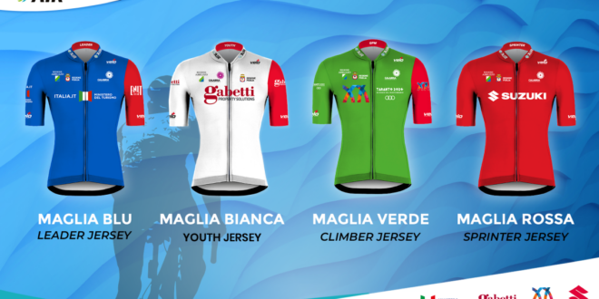 Dalla maglia Blu Ministero del Turismo Italia.it e Enit (classifica generale) a Bianca Gabetti (giovani), Verde Taranto 2026 (GPM) e Rossa Suzuki (sprinter).