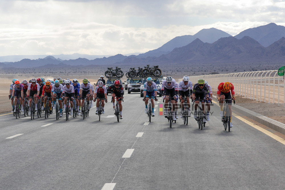I primi fuggitivi di giornata sono Luis Angel Maté (Euskaltel-Euskadi), Polychronis Tzortzakis (Roojai Insurance) e Yuma Koishi (JCL Team UKYO), che arrivano a guadagnare anche cinque minuti di vantaggio. Le squadre dei velocisti prendono in mano la situazione e qui diventa protagonista il vento. Il gruppo si spezza in vari tronconi e pagare maggiormente dazio sono tra gli altri Rafal Majka (UAE Team Emirates) ed anche il vecchio leader Søren Wærenskjold (Uno-X Mobility), anche a causa di una foratura.