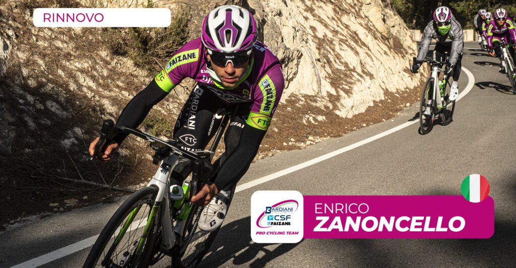 Rinnovo contrattuale anche per il veronese Enrico Zanoncello, atleta classe 1997 reduce dalle sue prime due stagioni da professionista nelle fila del team Bardiani CSF Faizanè. Pur avendo raggiunto in svariate occasioni podi e piazzamenti a Enrico Zanoncello è mancato il successo. La dirigenza del team ha comunque ritenuto di rinnovargli la fiducia per permettergli di esprimere appieno le sue potenzialità in un anno che sarà per lui decisivo.