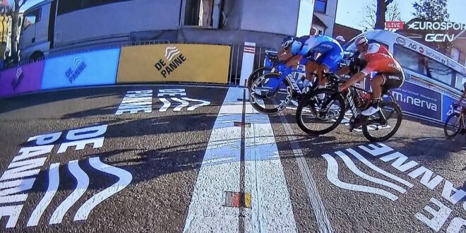 Ultimo tratto di gara percorso a velocità folle, come di consueto, in vista della volata. Sprint molto confusionario anche a causa della caduta di Pascal Ackermann (UAE Emirates). Tre uomini sulla stessa linea al photofinish: a spuntarla il padrone di casa Tim Merlier davanti a Dylan Groenewegen (BikeExchange – Jayco) e Nacer Bouhanni (Arkéa Samsic). Quarta piazza per Max Walscheid