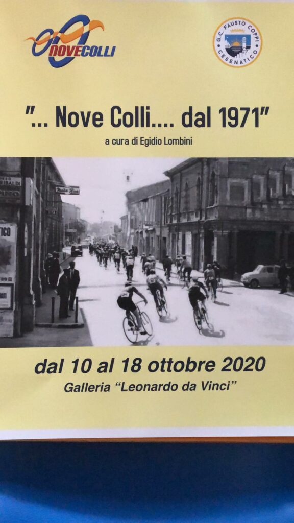 È cominciata la mostra “…Nove Colli…dal 1971”, un’esposizione che ripercorre tutte le edizioni della storica Granfondo attraverso i cimeli raccolti in questi 49 anni. La mostra, curata da Egidio Lombini, esporrà tutte le cartoline, le medaglie e le maglie dei protagonisti che hanno fatto la storia della manifestazione. Una celebrazione che lega i 17 pionieri che partirono dal Bar del Corso nel 1971, ai 12.000 partecipanti di tutto il mondo che nel 2021 sono pronti a celebrare la cinquantesima edizione della Nove Colli. La collezione sarà esposta presso la Galleria Leonardo da Vinci di Cesenatico fino al 18 ottobre, giorno in cui i cicloamatori potranno vivere un po’ di questa lunga storia partecipando alla prima edizione della Cicloturista “Sulle strade della Nove Colli”. I cicloamatori potranno scegliere tra tre percorsi dedicati, da 72, 106 o 152 chilometri; il tutto con partenza e arrivo presso la sede della Fausto Coppi di Cesenatico. La partenza sarà alla francese evitando così assembramenti. Le iscrizioni saranno aperte fino alle ore 22.00 del 15 ottobre, sul sito www.novecolli.it accedendo o registrandosi nell’area personale “My Nove Colli”.