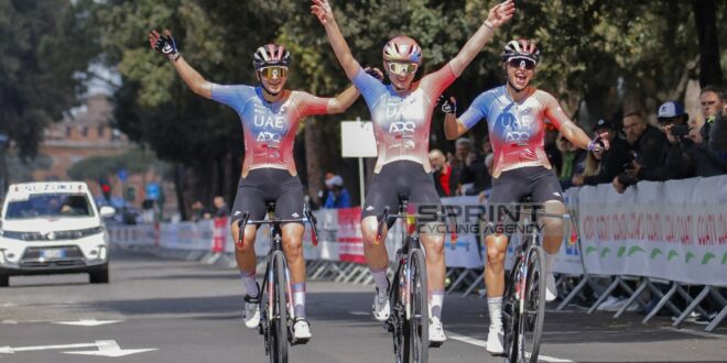 A seguire un’ulteriore scrematura e così il terzetto della UAE Team ADQ è giunto sul traguardo letteralmente in parata. Consonni appena più avanti rispetto a Persico e Gasparrini, tutte e tre esultanti di fronte al pubblico della capitale. Distaccate di un minuto Venturelli e Borghesi.