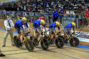 I campioni olimpici cominciano nel migliore dei modi la caccia al titolo iridato nell’inseguimento a squadre ai Mondiali di ciclismo su pista 2021 in corso a Roubaix (Francia). Filippo Ganna, Jonathan Milan, Simone Consonni e Francesco Lamon, ovvero i medesimi componenti del quartetto che qualche mese fa si prese la gloria imperitura di Olympia, hanno stampato il miglior tempo assoluto nel primo round di qualificazione, accedendo in semifinale e, soprattutto, candidandosi di prepotenza al gradino più alto del podio.