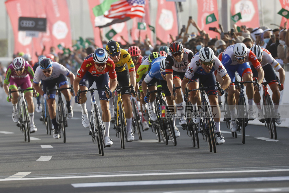 Mark Cavendish ha vinto in volata la seconda tappa dell’UAE Tour da Hudayriyat Island ad Abu Dhabi Breakwater per un totale di 176 chilometri. A nulla è servita la grande rimonta nei metri finali del belga Jasper Philipsen che non ha potuto far altro che assistere al 158esimo successo in carriera di “Cannonball”. Terzo Pascal Ackermann davanti a Olav Kooij e Arnaud Demare.