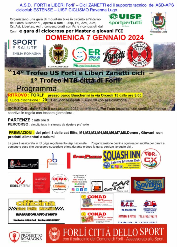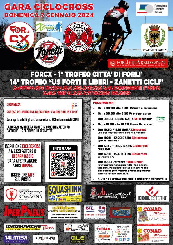 Con l’avvento del nuovo anno, torna a Forlì lo spettacolo del ciclocross in simbiosi con l’epilogo del circuito Adriatico Cross Tour come avvenuto nel 2023. Con lo svolgimento di ForCX – Trofeo Città di Forlì, domenica 7 gennaio, la regia di questa imponente macchina organizzativa ha come artefice l’US Forti e Liberi – Zanetti Cicli del presidente Sergio Luci che condivide gli sforzi con lo staff della Polisportiva Otello Buscherini nella persona di Matteo Leucci.