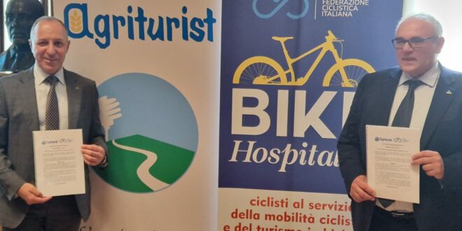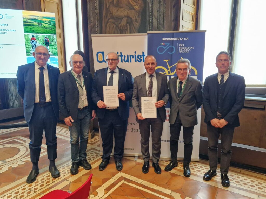 E’ stato firmato mercoledi mattina 17 aprile, presso la sede di Confagricoltura, a Palazzo della Valle, l’accordo di collaborazione tra la Federazione Ciclistica Italiana e Agriturist, Associazione Nazionale per l’Agriturismo. La collaborazione ha l’obiettivo di sviluppare e integrare il progetto promosso dalla FCI, “Bike Hospitality”, con le strutture associate ad Agriturist, per arricchire la mobilità sostenibile ed il turismo in bicicletta, con ulteriori servizi destinati agli utenti delle due ruote, riconosciuti e qualificati dalla Federazione Ciclistica Italiana.