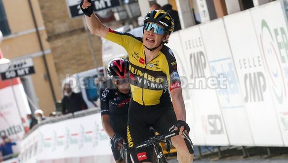 Il 24enne della Jumbo – Visma si impone in una volata ristretta sul traguardo in salita di Sogliano al Rubicone davanti a Ivan Sosa e Nick Schultz.