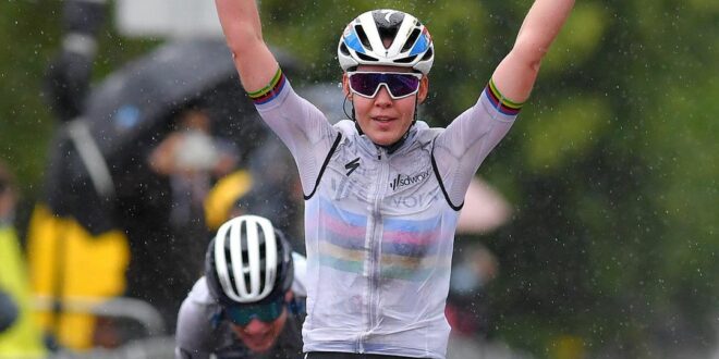 La campionessa danese della FDJ – Nouvelle Aquitaine Futuroscope era riuscita a raggiungere le due olandesi a 300 metri dal traguardo, ma non ha potuto fare nulla nello sprint a causa del dispendio importante di energie nel recuperare lo svantaggio. Alle loro spalle è arrivata Katarzyna Niewiadoma (Canyon-SRAM), staccata di soli 11”. Erica Magnaldi (Ceratizit-WNT) è l’unica italiana nella top 10, classificandosi ottava a 49”.