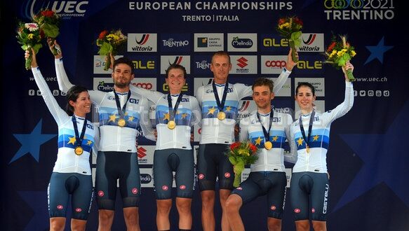 Non possono che iniziare nel migliore dei modi i Campionati Europei di Trento per la selezione italiana nella categoria Elite. Sulle strade di casa è stato dominio assoluto, grazie ad una perfetta condotta di corsa iniziata con il terzetto maschile e perfezionata dalle ragazze, giunte sul traguardo compatte ed unite, tutte insieme e con il tempo finale di 51’59”. La Germania (Miguel Heidemann, Justin Wolf, Max Walscheid, Mieke Kröger, Tanja Erath e Corinna Lechner) è medaglia d’argento a 21”, seguita dall’Olanda (Jos Van Emden, Koen Bouwman, Bauke Mollema, Demi Vollering, Amz Pieters e Floortje Mackaij) a 26”. E’ fuori dalla zona medaglie la squadra francese, quarta a 1’28”.