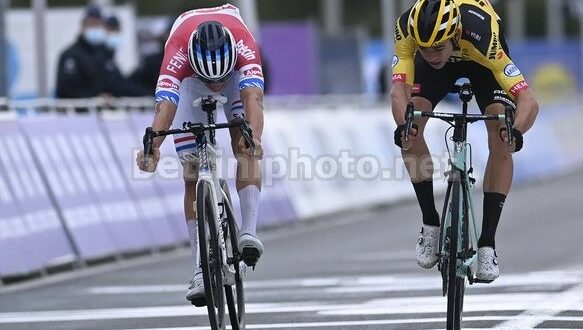 OUDENAARDE – Il Giro delle Fiandre 2020 si trasforma nel festival del ciclocross. In un finale caratterizzato dal ritiro del campione del mondo Julian Alaphilippe, caduto e finito contro una moto al seguito della corsa quando mancavano 35 km al traguardo, Mathieu Van der Poel e Wout van Aert si giocano la volata allo sprint. Nella volata a due, l’olandese conquista la sua prima classica monumento in carriera battendo il rivale di sempre, prima nel ciclocross e ora nel ciclismo su strada.