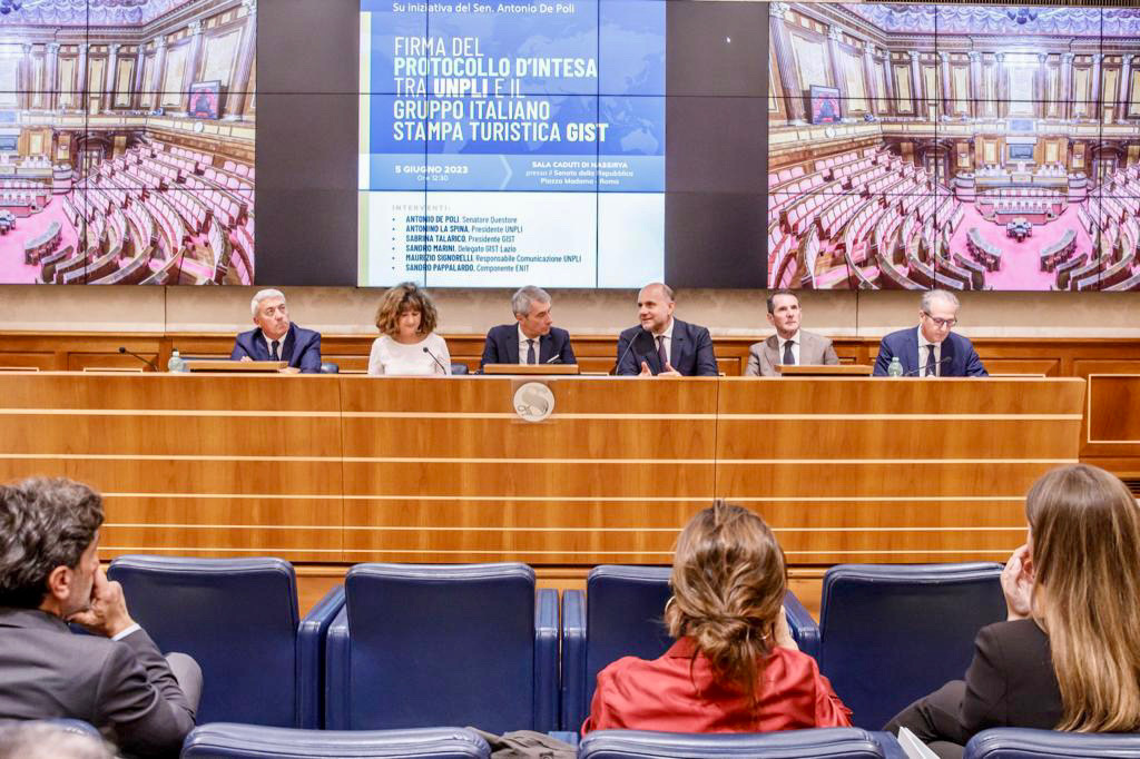 Questa la missione dell’intesa siglata nel Senato della Repubblica tra l’Unpli e il GIST, su iniziativa del Senatore questore Antonio De Poli. Al centro dell’accordo un’azione volta ad accendere i riflettori sull’attività e gli eventi di eccellenza promossi dalla rete Pro Loco, valorizzando la tradizione culturale ed enogastronomica italiana. Il documento è stato firmato dal presidente dell’Unpli, Antonino La Spina, e dal presidente del GIST, Sabrina Talarico. Alla presentazione sono intervenuti Sandro Marini (Delegato GIST Lazio), Maurizio Signorelli (Responsabile comunicazione Unpli) e Sandro Pappalardo (Componente Cda Enit).