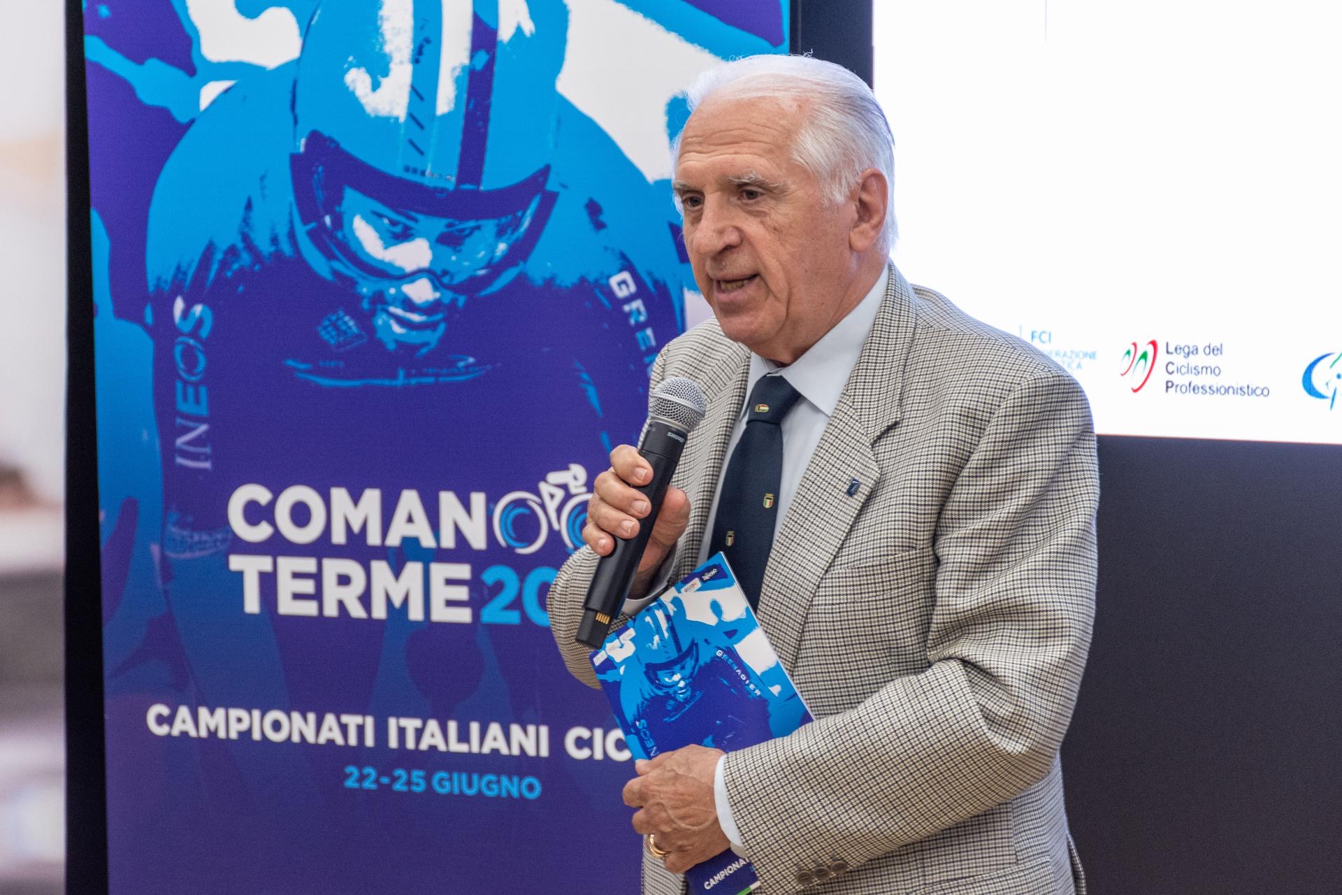 Alla presentazione, condivisa con l’altro Campionato Italiano organizzato in Trentino, quello di MTB Marathon in programma il 29 luglio a Telve, in Valsugana, hanno preso parte, tra gli altri, l’Assessore al Turismo e allo Sport della Provincia Autonoma di Trento Roberto Failoni, il Presidente e il CEO di Trentino Marketing, rispettivamente Gianni Battaiola e Maurizio Rossini, il Presidente di APT Garda Dolomiti Silvio Rigatti, il Presidente della Federazione Ciclistica Italiana Cordiano Dagnoni, la Presidente di CONI Trento Paola Mora, la Presidente di FCI Trento Giovannina Collanega, il Sindaco del Comune di Bleggio Superiore Flavio Riccadonna, il Direttore delle Terme di Comano Alessandro Bazzanella, il Direttore di APT Valsugana Stefano Ravelli, il Sindaco del Comune di Telve Matteo Degaudenz, oltre ai leader dei comitati organizzatori, il Presidente del GS Alto Garda Giacomo Santini e il General Manager Maurizio Evangelista per i Campionati Italiani su strada di Comano Terme ed Enrico D’Aquilio per i Campionati Italiani di MTB Marathon in Valsugana.