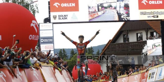 Colpaccio di Matej Mohoric nella seconda tappa del Giro di Polonia 2023: lo sloveno trionfa in vetta a Karpacz e si prende la maglia di leader della classifica generale. Tre uomini a comporre la fuga di giornata: Lorenzo Milesi (Team dsm – firmenich), Jacopo Mosca (Lidl-Trek) e Sam Brand (Team Novo Nordisk). Per loro vantaggio massimo di 9’, con il plotone che però a mano a mano è andato a ridurre il distacco.