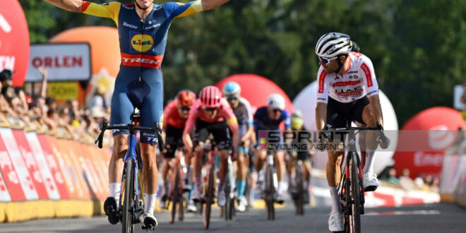 Negli ultimi 25 km, il plotone si è trovato ad affrontare prima un tratto in salita a Karłów e poi una leggera discesa che portava al traguardo, posto al termine di uno strappo di 900 metri all’8,1%, importante a fini del risultato finale. Il migliore è stato Thibau Nys. Il talentuoso belga della Lidl Trek, già a segno nella prima frazione, si è ripetuto quest’oggi riuscendo a prevalere in rimonta nei confronti di Diego Ulissi.