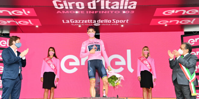 Splendida prestazione di Filippo Ganna nella prima tappa del Giro d’Italia, scattato oggi con la cronometro Monreale-Palermo. Il neo campione del mondo a cronometro ha sfrecciato alla velocità media oraria di 58,8 km/h e conquista la prima maglia rosa di leader della classifica generale.