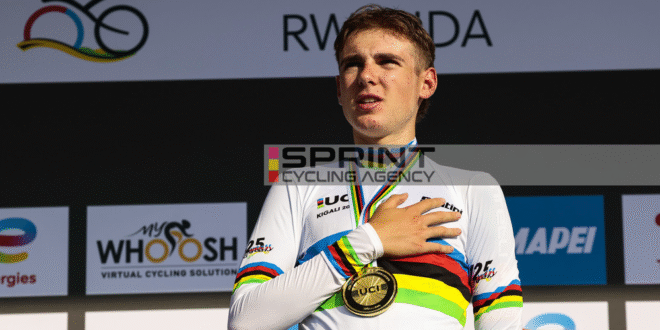 Il giovane talento ha conquistato la maglia iridata nella categoria Under 23, appena dodici mesi dopo aver vinto il titolo juniores, un’impresa rarissima nel ciclismo moderno.