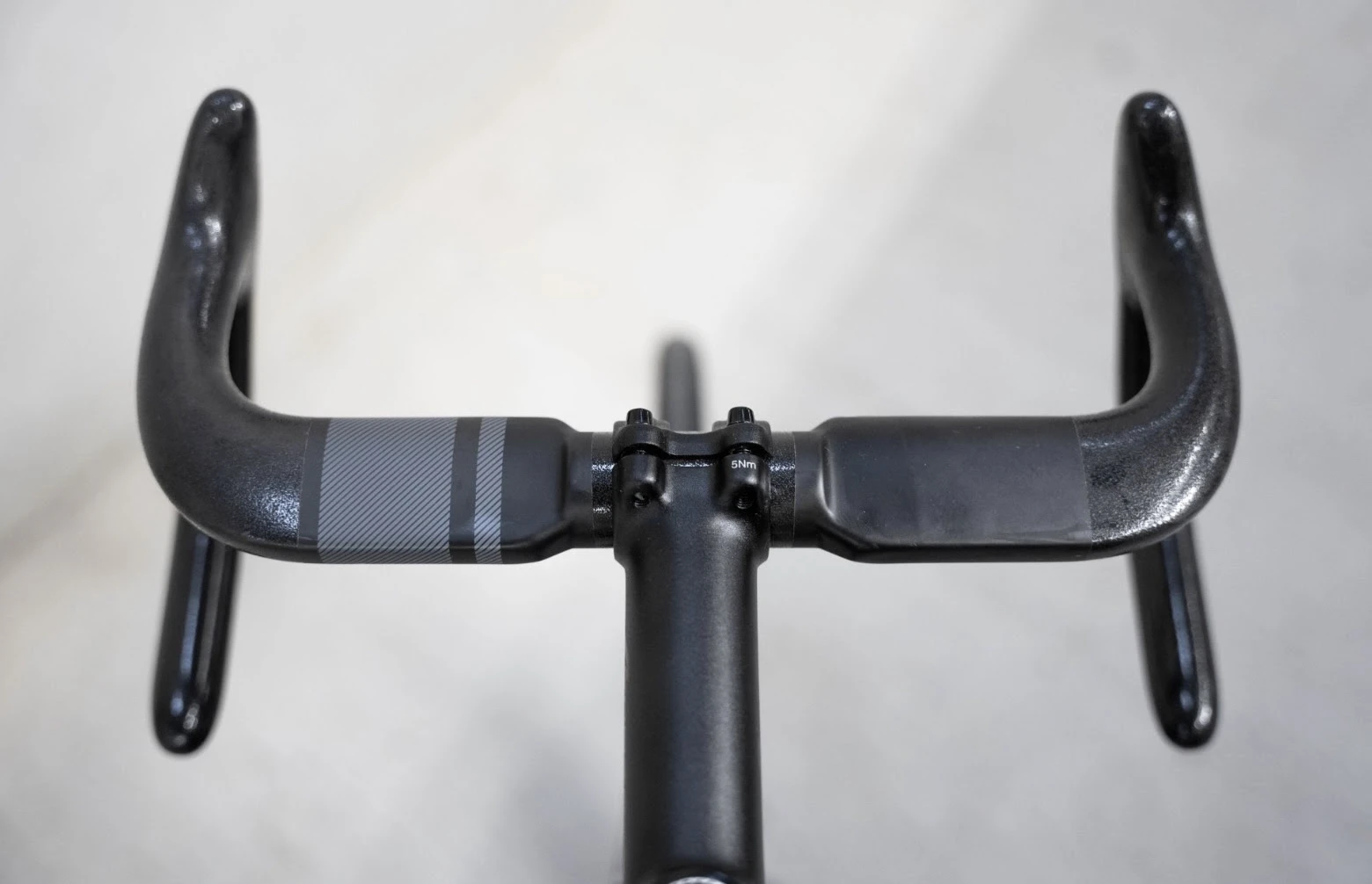Il nuovo manubrio, progettato secondo le normative UCI, offre una larghezza di 35 cm, il minimo consentito dalle norme. La larghezza nella parte superiore è di 30 cm, mentre nei drop raggiunge i 33 cm, misurati al centro. Il reach è di 105 mm e il drop di 120 mm, ottimizzando così la posizione in sella per un equilibrio perfetto tra aerodinamica e controllo. Inoltre, il manubrio è dotato di “appendici” aggiuntive che permettono al ciclista di assumere una posizione aerodinamica, simile alla presa sulle leve dei freni di una bici da strada. Un rivestimento ruvido migliora la presa, garantendo un perfetto equilibrio tra aerodinamica e controllo, essenziale in gare ad alta velocità.
