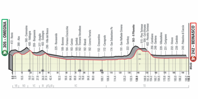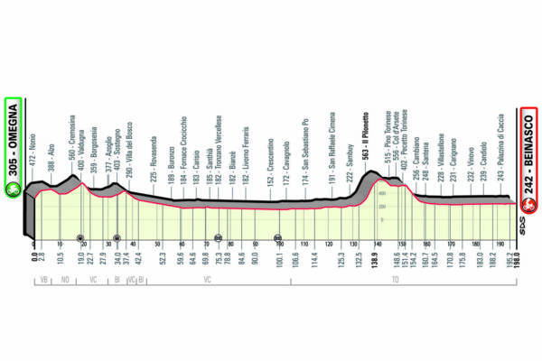 Rispetto alle gare viste nell’ultima settimana, come il Giro dell’Emilia e la Tre Valli Varesine, il percorso non presenterà troppe difficoltà altimetriche nei 198 chilometri con partenza da Omegna ed arrivo a Beinasco, con il finale che dovrebbe prevedere una volatona di gruppo.