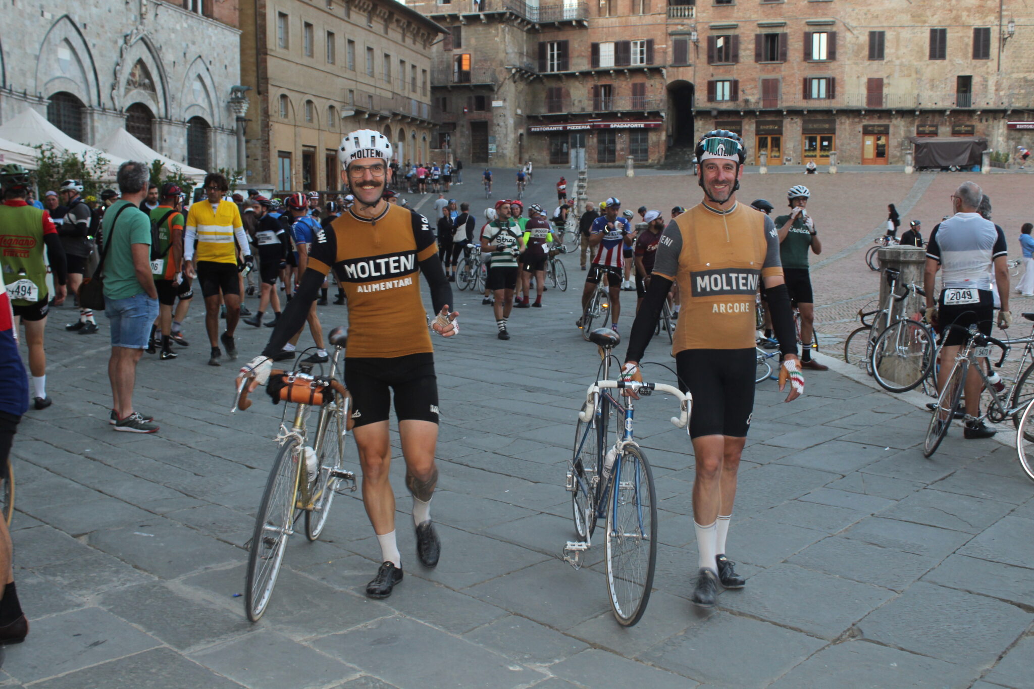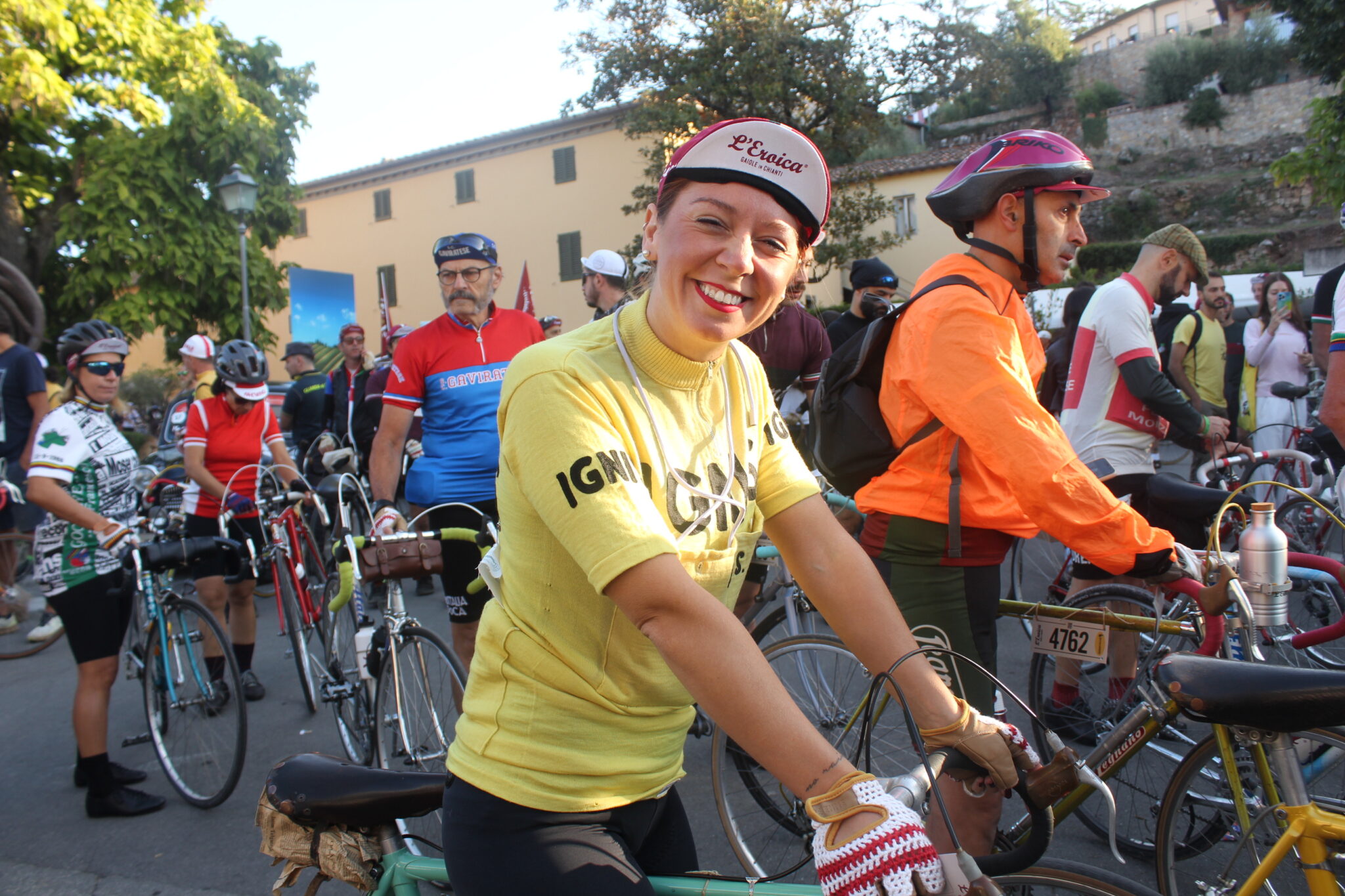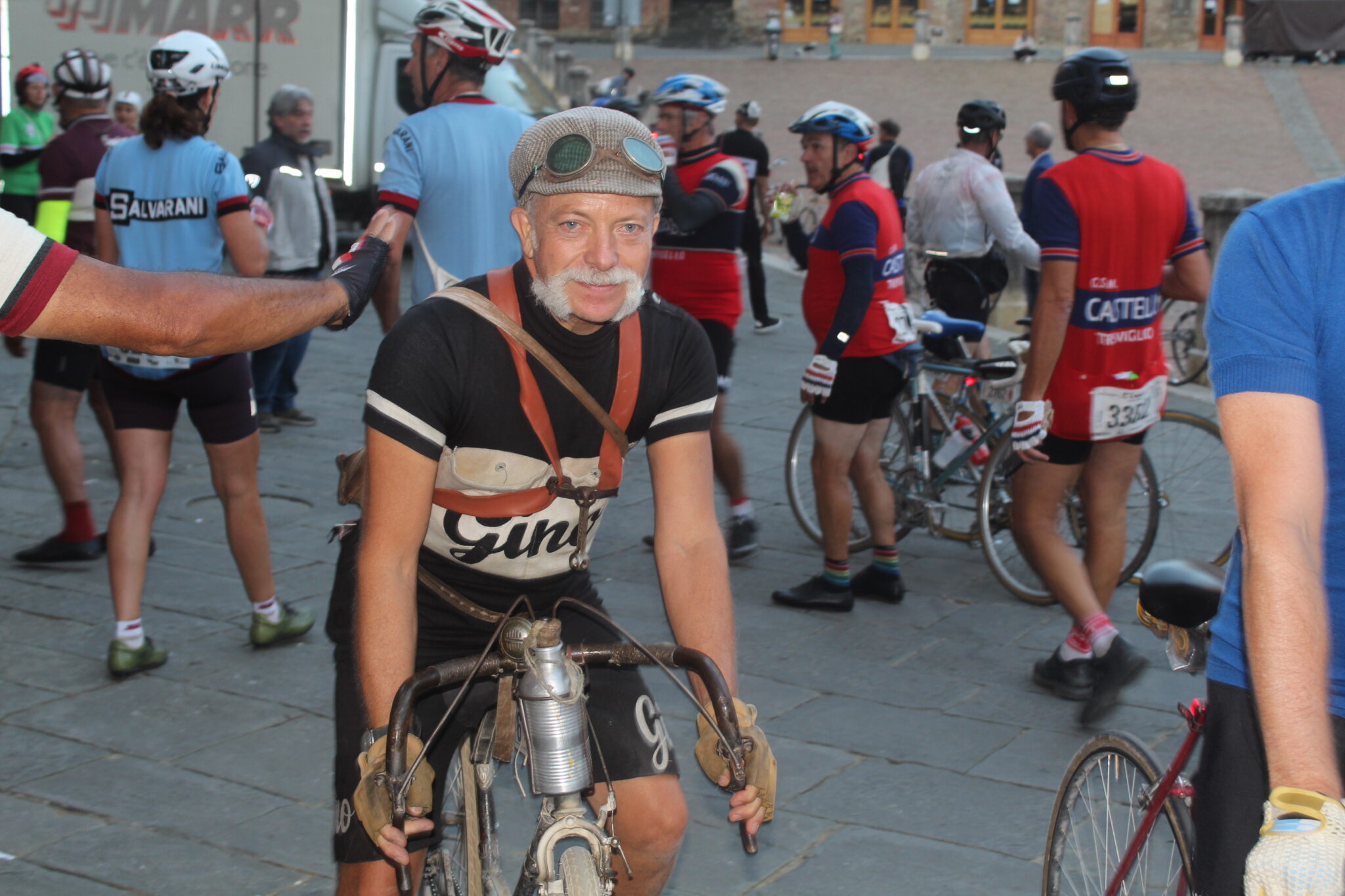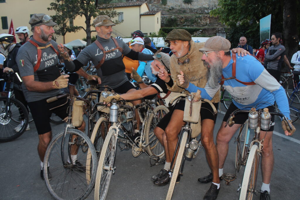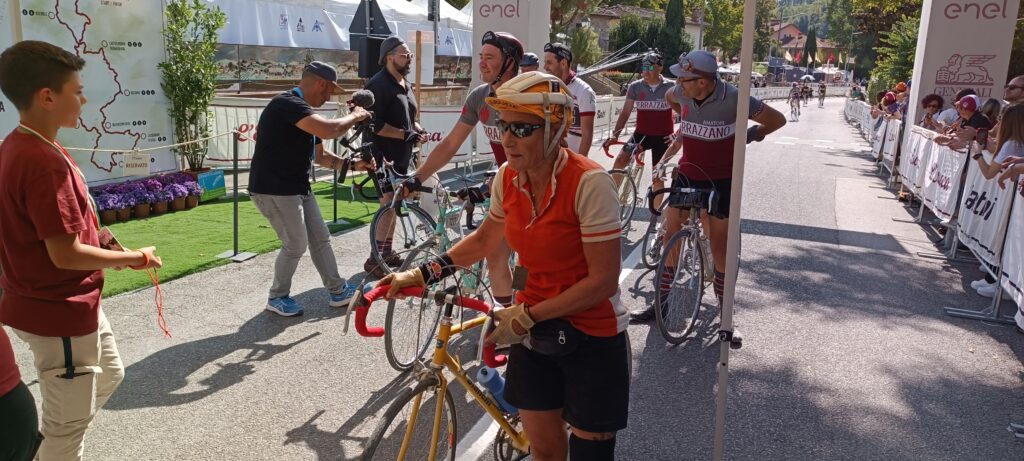 Mi rendo subito conto che quello a cui assisterò nelle ore seguenti sarà unico al mondo, basta leggere i numeri della vigilia: 9000 iscritti che avranno a disposizione cinque percorsi da affrontare con biciclette ed abbigliamento d’epoca, con una ampia percentuale di stranieri da tutti e cinque i continenti. Arrivano anche ex professionisti e atleti Elite ancora in attività, come Davide Cassani, Alessandro Ballan, Edita Pucinskaite, Mario Beccia, Anna Trevisi, Beppe Saronni, Gilberto Simoni, Maria Cressari, Tista Baronchelli e Michal Kwiatkowski. A loro si sono uniti personaggi che nel mondo del ciclismo sono promotori di campagne dedicate alla sicurezza stradale, come Paola Gianotti di “Io rispetto il ciclista” e Marco Scarponi, creatore della fondazione dedicata a Michele, il grande campione del Team Astana che ci ha lasciati tragicamente nel 2017.