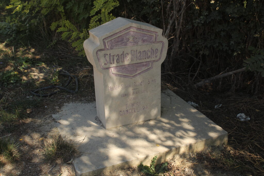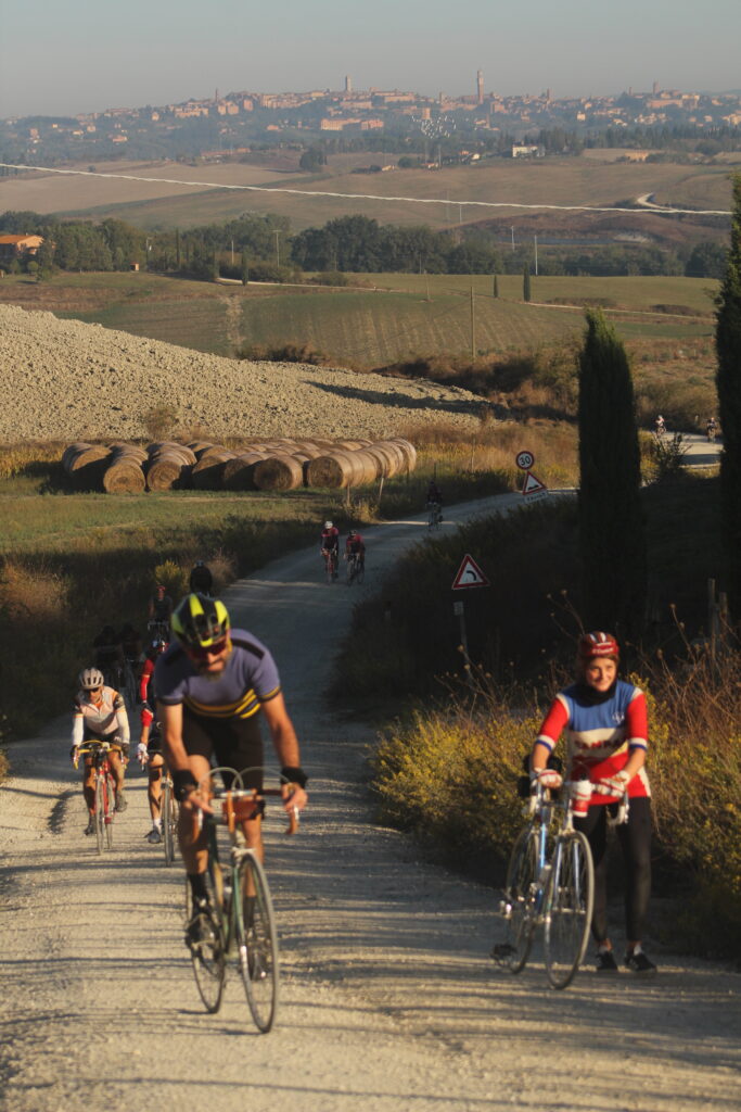 Questa parte è quella cruciale della gara dei professionisti, un settore di strada bianca lungo 11.3 chilometri e con rampe dure, anche superiori al 15% ed intervallate da alcune contropendenze. All’ingresso dello sterrato si trova il cippo (ora un po’ sbiadito) dedicato a Fabian Cancellara, vincitore di ben tre edizioni. Poco lontano dallo scollinamento si trova un punto panoramico in cui si possono ammirare le Crete Senesi e la strada che porta al piccolo borgo di Monte Sante Marie, dove i corridori si fermano per la classica foto con il cartello stradale e per rifiatare. Verso Gaiole c’è ancora da passare per Castelnuovo Berardenga e gli ultimi sterrati nei pressi di Radda prima dell’arrivo a braccia alzate.