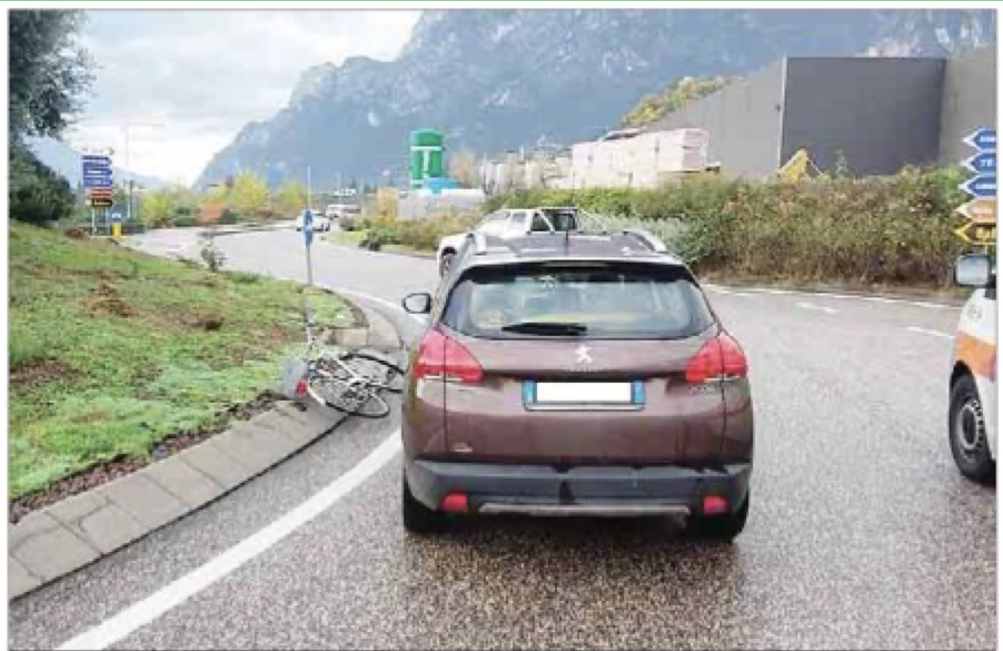 La city bike di Letizia Paternoster a terra e l’auto che l’ha investita – credit photo L’Adige