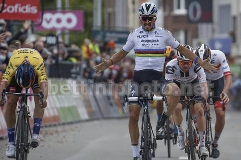 Pochi metri dopo, mentre Alaphilippe stava già esultando per il successo con la maglia di campione del mondo, Primoz Roglic riesce a superare il francese, beffandolo proprio sulla linea del traguardo. Alaphilippe ha una foto a braccia alzate che non rappresenta una sua vittoria, mentre Roglic porterà nel cassetto dei ricordi una vittoria per la quale ha potuto esultare solo sul podio.