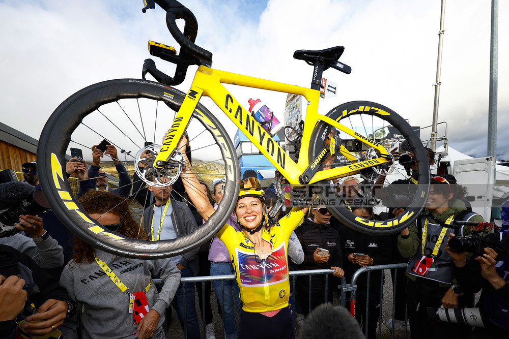 La polacca sembrava aver subito il colpo di grazia, ma soprattutto grazie all’aiuto della coppia Lidl-Trek composta da Lucinda Brand e Gaia Realini (magnifica la pescarese, quinta in classifica generale), è riuscita a limitare i danni quanto basta. Sulla salita finale il distacco si era stabilizzato sui 50”, seguendo Evita Muzic (e con la spinta morale del compagno Taylor Phinney posizionato a bordo strada a due chilometri dall’arrivo) da cui ha perso lo sprint del terzo posto, ma è stato sufficiente per regalare il Tour alla atleta di Canyon-SRAM, in lacrime dopo l’arrivo.