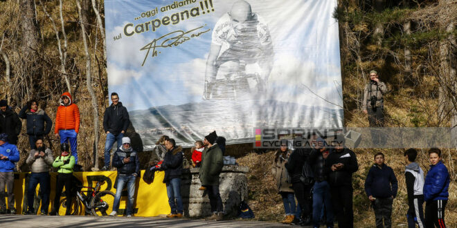 Il Monte Carpegna non è una salita lunga, misurando “solo” sei chilometri, ma le arcigne pendenze fanno davvero male ed è considerata come una delle più dure del Centro Italia. Il “Cippo” arriva fino al 14% di pendenza massima, la media sfiora il 10% ed è molto tecnico da entrambi i versanti. Per questo Marco Pantani arrivava fin quassù da Cesenatico, lambendo la Repubblica di San Marino prima di giungere all’attacco della salita. Come ci ha raccontato questa mattina Giuseppe Martinelli,(qui il video) Pantani ci andava anche quando d’inverno la neve impediva alle auto di proseguire fino alla vetta, ed a volte veniva seguito dal suo storico Direttore Sportivo.
