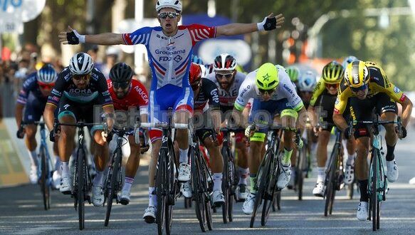 Poco prima, una caduta nelle prime posizioni del gruppo ha frazionato e allungato il gruppo, con la maggior parte dei favoriti che però sono riusciti a rimanere nelle posizioni di testa. La Bora – hansgrohe ha provato a lavorare in favore di Peter Sagan nel finale, ma gli uomini dello slovacco sono arrivati lunghi all’ultimo chilometro, lasciando solo l’ex campione del mondo. La Groupama-FDJ, invece, è uscita con quattro uomini all’ultimo chilometro: Jacopo Guarnieri ha tirato la volata in maniera impeccabile ad Arnaud Démare, che ha risposto alla volata lunga di Peter Sagan scavalcandolo e vincendo con oltre una lunghezza di margine su Caleb Ewan (Lotto Soudal) e Wout Van Aert (Jumbo-Visma), rispettivamente in seconda e terza piazza. Quarto Sagan, seguito da Danny Van Poppel (Circus – Wanty Gobert), Nacer Bouhanni (Arkea Samsic), Fernando Gaviria (UAE Emirates) e Manuel Belletti (Androni – Sidermec) in ottava piazza.
