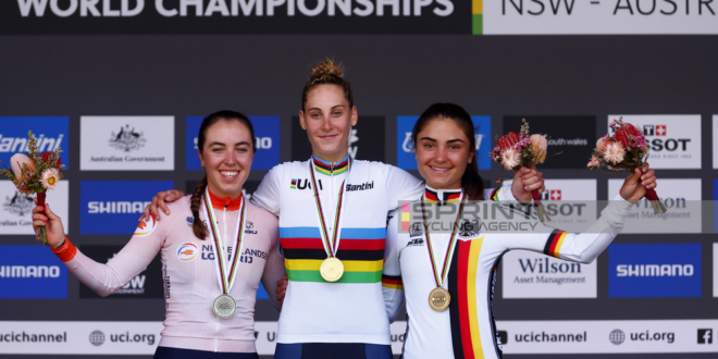 La rassegna iridata di Wollongong (Australia) si è aperta con la conferma da parte della olandese della Trek-Segafredo, al terzo oro in carriera, ma la gioia è anche italiana grazie alla 21enne toscana della FDJ-Suez-Futuroscope, che si prende la prima Maglia arcobaleno della categoria Under 23. Sul podio assoluto ci vanno una sorprendente Grace Brown (Australia), che batte la svizzera Marlen Reusser.