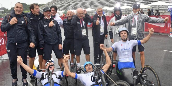 E’ finalmente oro a Tokyo per gli azzurri del paraciclismo. Paolo Cecchetto, Luca Mazzone e Diego Colombari dominano la staffetta olimpica e conquistano il gradino più alto del podio nella terza giornata di gare dedicate al ciclismo. Una prova di spessore per l’Italia, che si conferma regina di questa disciplina con una formazione – la stessa che a giugno vinse il titolo iridato ai Mondiali di Cascais – che non fa assolutamente rimpiangere le assenze di atleti come Zanardi e Podestà.