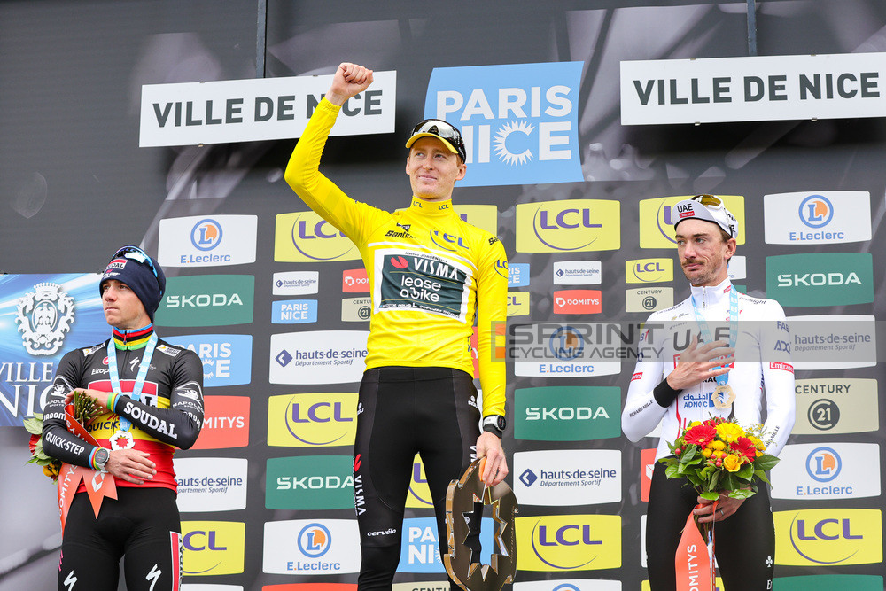 Remco Evenepoel lascia la sua firma su questa Parigi-Nizza: bellissima vittoria del belga nell’ultima durissima tappa con arrivo a Nizza. Matteo Jorgenson gli arriva alle spalle e si prende così il successo finale: grandissima settimana da parte dell’americano del Team Visma | Lease a Bike. Ottimo sesto posto per Samuele Battistella.