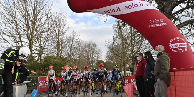 Strade Bianche Women Elite Eolo, prima prova del calendario UCI Women’s WorldTour, giunta alla sua 7a edizione e organizzata da RCS Sport è partita oggi da Siena alle ore 9:17 forte di 135 atlete.
