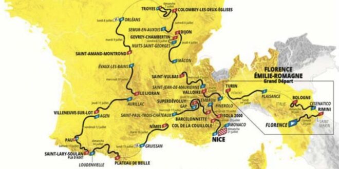 Il Tour de France 2024 partirà da Firenze per omaggiare Gino Bartali: si affronteranno ben sette GPM, tra cui il Barbotto, il San Leo, il Montemaggio e l’ascesa a San Marino prima dell’arrivo a Rimini dove già la classifica subirà importanti scossoni. La seconda giornata prevede il via da Cesenatico per ricordare Marco Pantani: si arriverà a Bologna dopo aver affrontato per due volte il San Luca (l’ultima a 18 chilometri dal traguardo). Nella terza tappa entreranno in scena i velocisti: partenza da Piacenza e arrivo a Torino omaggiando Fausto Coppi, annunciata la volata nel capoluogo piemontese.