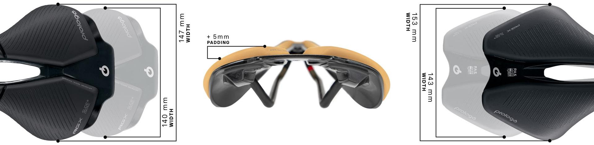 I modelli Scratch M5 AGX Slide Control Space da 147 mm e Dimension AGX Slide Control Space da 153 mm sono stati progettati per ciclisti con esigenze specifiche. Sono ideali per chi ha una distanza delle ossa ischiatiche più ampia o un indice di massa corporea più alto.