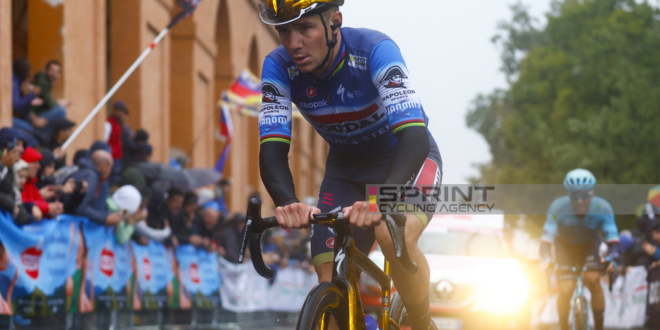 Dopo un ruolo attivo nel Giro dell’Emilia, dove ha avviato una mossa poi controbattuta da Tadej Pogačar, Evenepoel ha dovuto ritirarsi a causa di detriti nell’occhio.