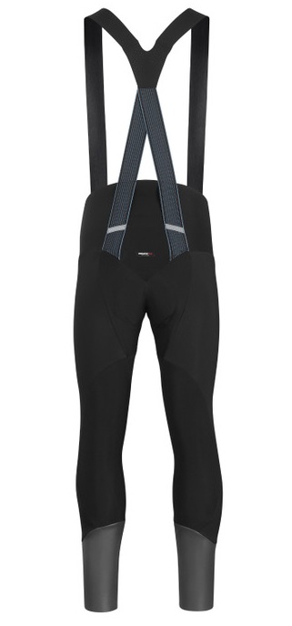 Primo tra questi – ma non per importanza – la tecnologia A-Lock Engineering S9, che sta ad indicare quella architettura di costruzione in cui tecnologie e tessuti operano in sinergia per dare stabilità al pantalone e mantenere sempre il fondello in sede. Elemento importante di questo sistema è l’architettura rollBar e le cuciture ergoBox con cui le bretelle si inseriscono posteriormente nel pantalone: ampiamente collaudato sui pantaloni estivi Assos, questo sistema ispirato alle barre antirollio delle auto da corsa utilizza le due cinghie delle bretelle che a prescindere dalla posizione del ciclista in quel momento stabilizzano perfettamente il fondello. Quest’ultimo è l’Equipe RS Winter Insert, versione invernale del migliore fondello utilizzato sui capi estivi, costruito con interfaccia elastica in colorazione basaltica e ad effetto tridimensionale e differente dai modelli estivi solo per l’assenza dei fori di ventilazione kraterCooler nella parte frontale. Immancabile, anche su questa nuova calzamaglia, è l’architettura GoldenGate con cui il fondello si accoppia al tessuto sottostante, che interrompendo le cuciture lungo specifiche porzioni del fondello, offre una libertà di movimento realmente tridimensionale, in grado di lasciare sempre il fondello aderente al corpo, a prescindere dalla posizione assunta dal ciclista.
