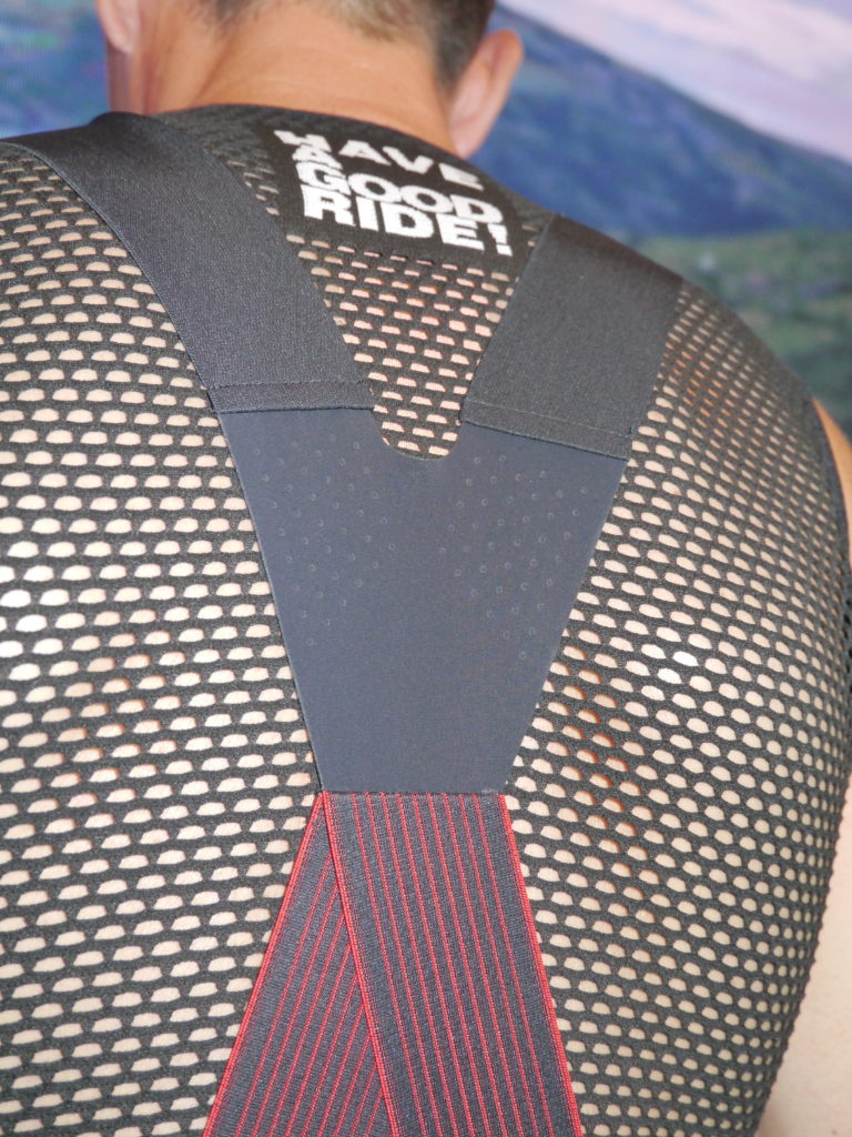 Ancora, mai visto su un pantaloncino da ciclismo è il Rollbar, un sistema brevettato che usa le cinghie delle bretelle al fine di stabilizzare il fondello quando in curva si sposta il peso corporeo a destra e sinistra. Da parte loro le bretelle sulla schiena sono costruite con un singolo pezzo di fascia elastica, che crea un “A-frame”, una giuntura a “X” che collega la “A” con le bretelle frontali.