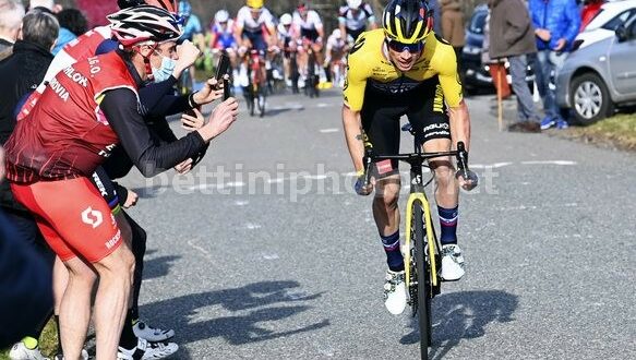 Il corridore della Jumbo-Visma ha messo a segno il primo colpaccio della sua stagione conquistando tappa e maglia di leader, scattato a tre chilometri dall’ arrivo in salita di Chiroubles, lo sloveno ha fatto subito il vuoto ed è giunto in solitaria al traguardo.