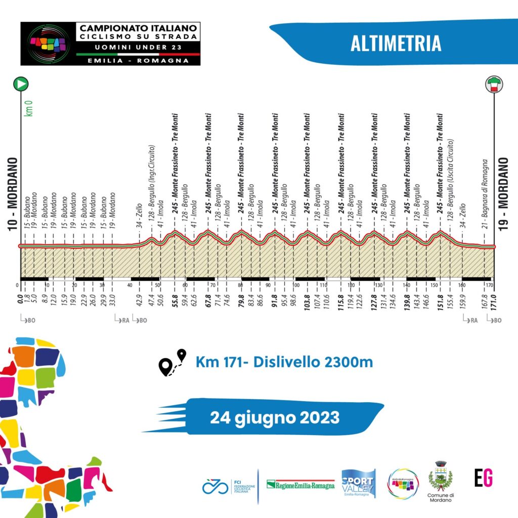 Sabato 24 giugno a Mordano (Bo) verrà assegnata la maglia Tricolore della Federazione Ciclistica Italiana al termine del Campionato Italiano di ciclismo su strada per Uomini Under 23, con organizzazione di ExtraGiro.