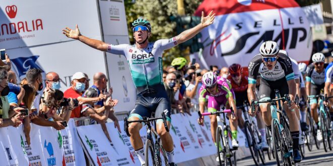 La seconda tappa della Settimana Ciclistica Italiana – sulle Strade della Sardegna che si è corsa oggi con partenza da Sassari ed arrivo a Oristano va al velocista tedesco Pascal Ackermann (Bora Hansgroe) che sul lungo rettilineo d’arrivo di Via Cagliari ha preceduto l’ungherese Barnabas Peak (Team Bikeexcange) e il belga Sep Vanmarcke (Israel Start Up Nation).
