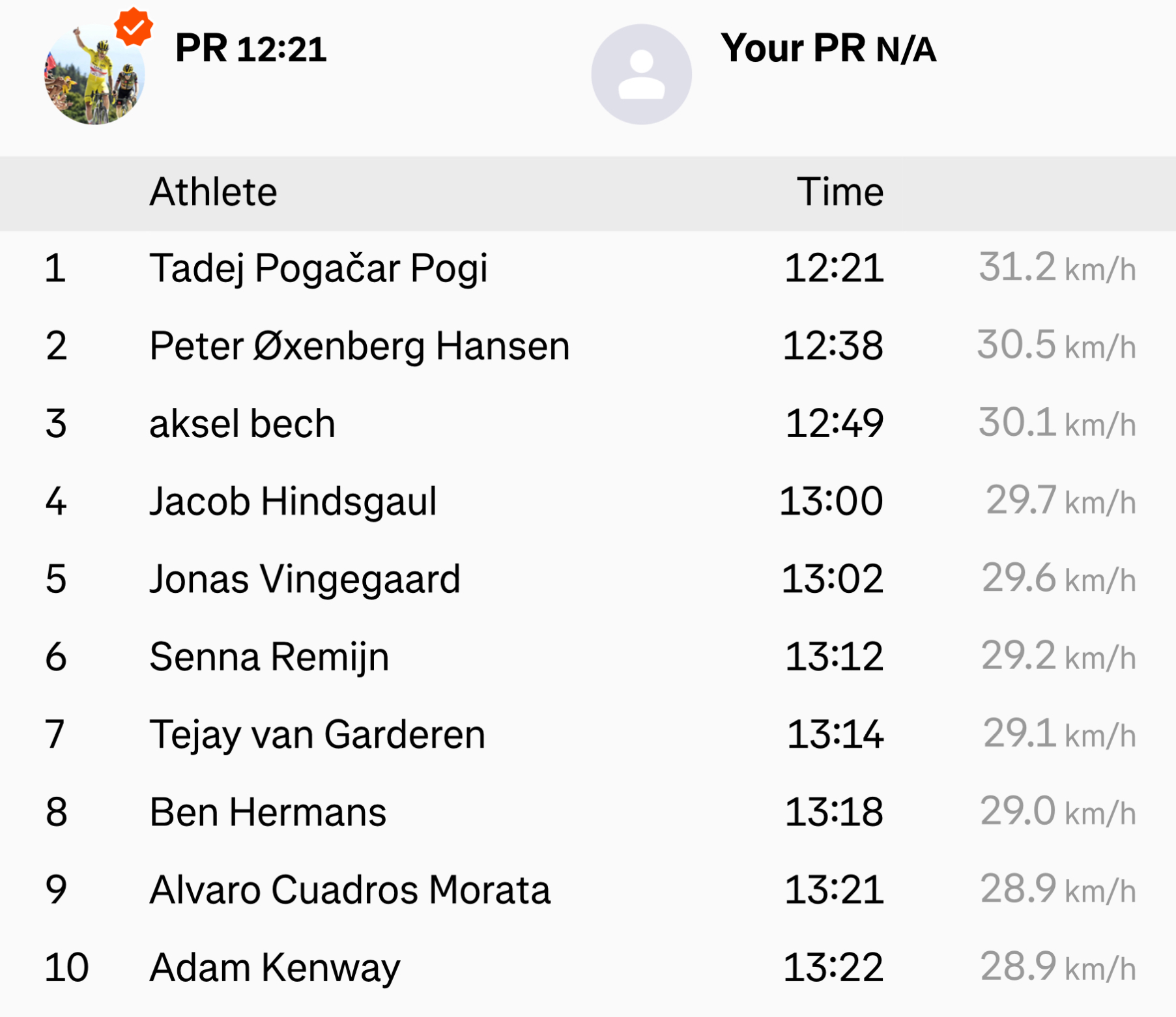 Il campione sloveno, supportato dai compagni della UAE Team Emirates, ha mantenuto una velocità impressionante superiore ai 31 chilometri orari lungo i 6,5 chilometri della salita.