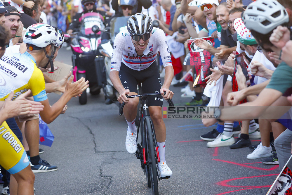A circa 10 chilometri dal traguardo un accenno di crampi per Pogacar, ma il vantaggio vicino al minuto è bastato per andare a trionfare. Alle sue spalle lotta per il podio con una volata ristretta che ha visto Bagioli andarsi a prendere una magnifica seconda piazza davanti a Roglic, mentre completano la top-5 Aleksandr Vlasov (Bora-hansgrohe) e Simon Yates (Jayco AlUla).