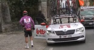 Caleb Ewan si ritira della Tirreno-Adriatico 2021. Il velocista della Lotto Soudal si è staccato improvvisamente dal gruppo a 100 chilometri dal traguardo della tappa odierna, salendo in ammiraglia. Un ritiro inaspettato per l’australiano in maglia ciclamino che non aveva dato segnali di malessere né nei giorni scorsi, né tantomeno oggi prima della partenza della tappa. Copyright © Inbici Magazine ©Riproduzione …
