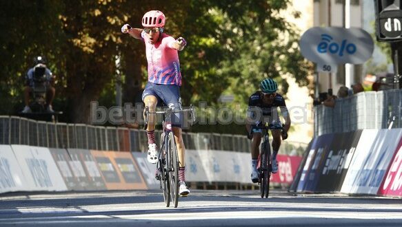 Il corridore della EF Education First conquista il traguardo di Saturnia, battendo in una volata a due Rafal Majka (Bora – Hansgrohe), al termine di una giornata vibrante.