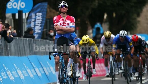 Il campione olandese della Alpecin-Fenix si è imposto sull’insidioso arrivo di Gualdo Tadino dopo 219 km, secondo posto per Wout van Aert (Jumbo-Visma), terza posizione per Davide Ballerini (Deceuninck Quick-Step).