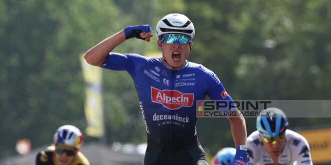 A lanciare la volata è stata l’Alpecin-Deceuninck con un super Mathieu Van der Poel: l’uomo ideale per Jasper Philipsen che non ha sbagliato nulla ed ha dominato lo sprint. Alle sue spalle Phil Bauhaus (Bahrain – Victorious), Caleb Ewan (Lotto Dstny) e Fabio Jakobsen (Soudal – Quick Step). Miglior italiano un buon Luca Mozzato (Team Arkéa Samsic), dodicesimo.