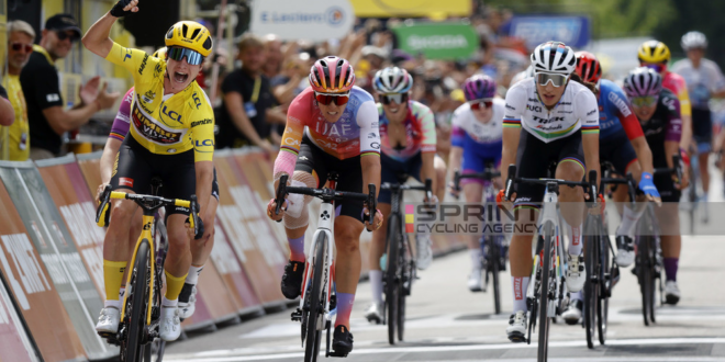 Due tappe al Giro Donne, due anche al Tour de France femminile 2022 per Marianne Vos: l’olandese a 35 anni continua a primeggiare nettamente. In Maglia Gialla l’atleta della Jumbo-Visma si impone nello sprint di Rosheim, aumentando ancora il margine in classifica generale.