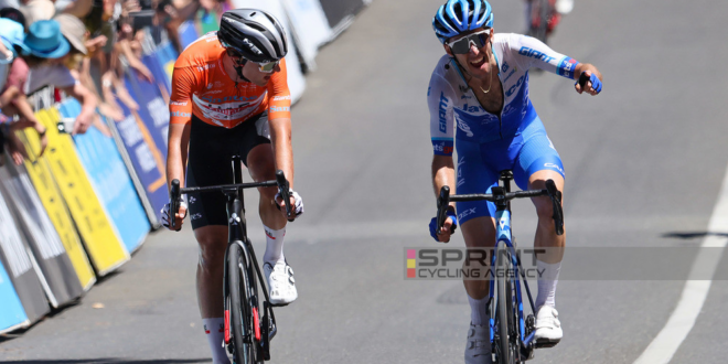 La corsa si riduce dunque agli ultimi due chilometri, all’ultima salita. E a rompere gli indugi è Simon Yates, ma dietro di lui rimane la coppia australiana composta dal leader Vine e da Ben O’Connor, che si attacca ai due vedendo il modo di poter risalire la classifica. Il terzetto si costruisce un cuscinetto di qualche secondo che basta per la volata finale: Vine parte lungo, ma viene passato dal britannico in prossimità del traguardo. Tutti contenti, in fondo.